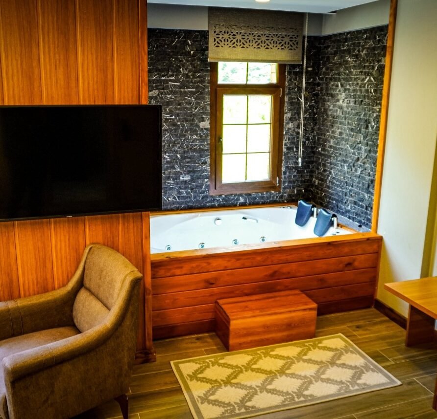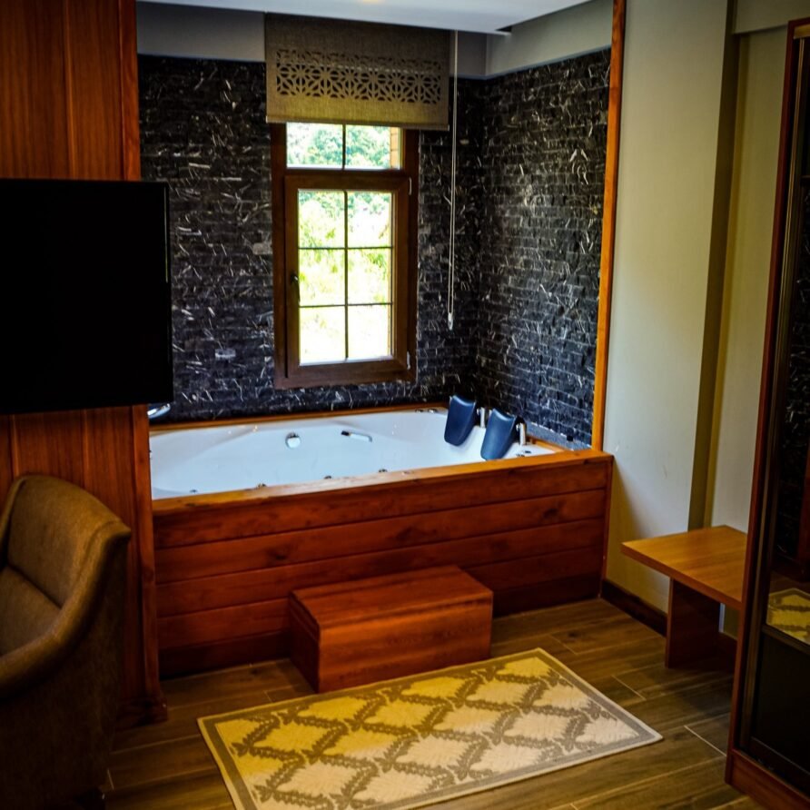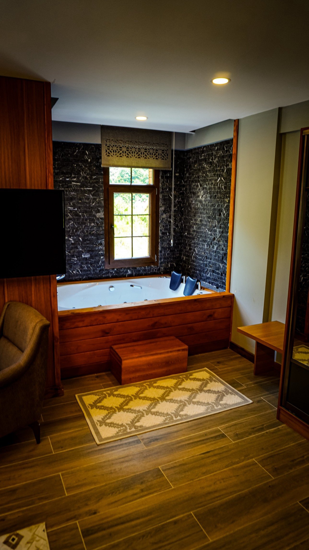 - Amenities: air-conditioning, Bathrobe, Bathroom essentials, Bedroom comforts, Flat Screen, Hair dryer, Heating, Jacuzzi, Private bathroom (separate bathtub and shower), Wi-Fi