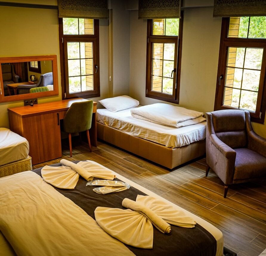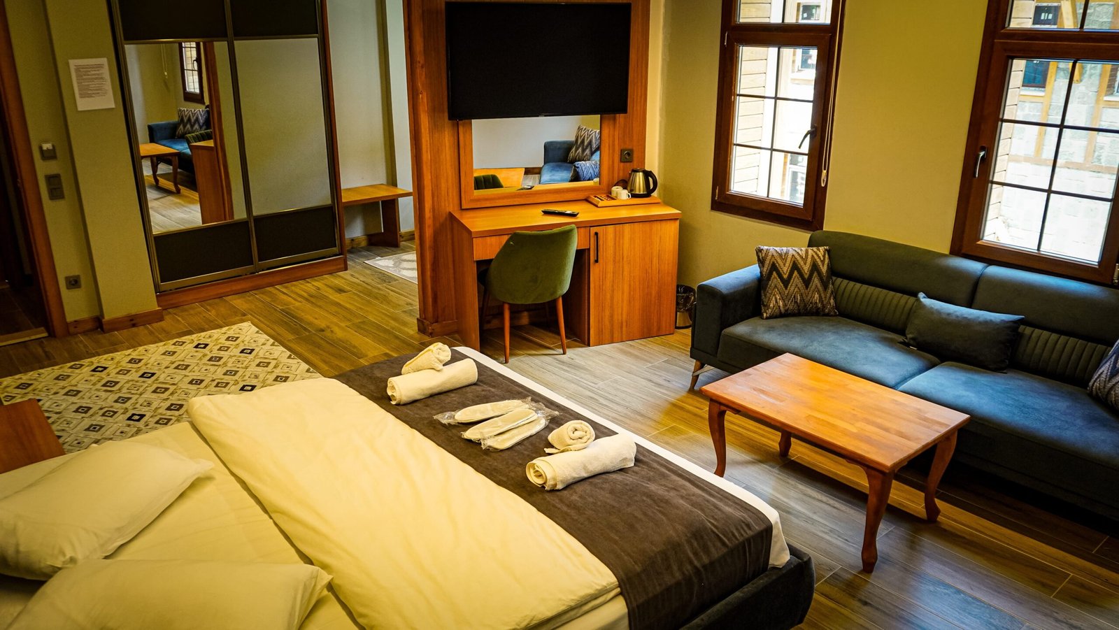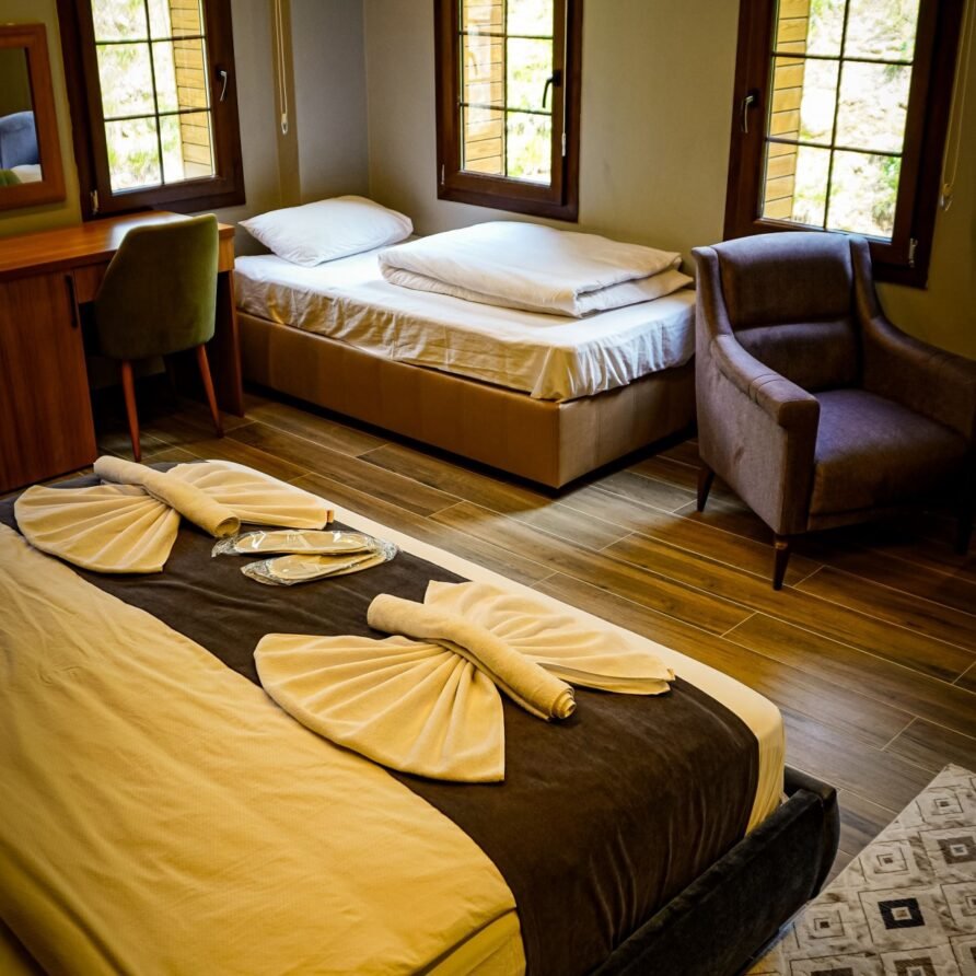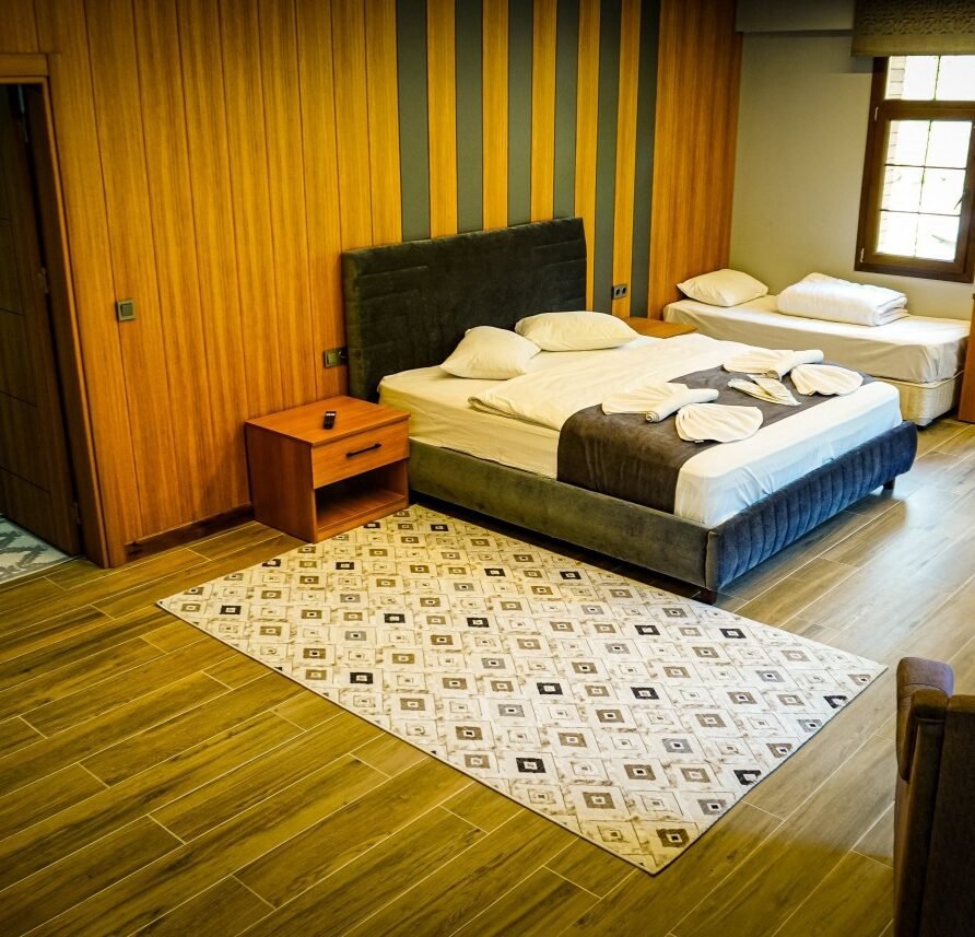 Each suite is outfitted with modern amenities including an LCD TV, high-speed Metro Ethernet internet, telephone, refrigerator, electric stove, kettle, washing machine, dining table, full-length mirror, and a seating area for relaxation. Thermal water is available throughout the suite, including in underfloor heating, ensuring a warm and comfortable stay. Breakfast and dinner are included, and additional services such as massage can be arranged to enhance your family’s luxurious experience. With ample space, private balconies, and thoughtful design, our Deluxe Family Suites offer the perfect home-away-from-home for an unforgettable vacation.