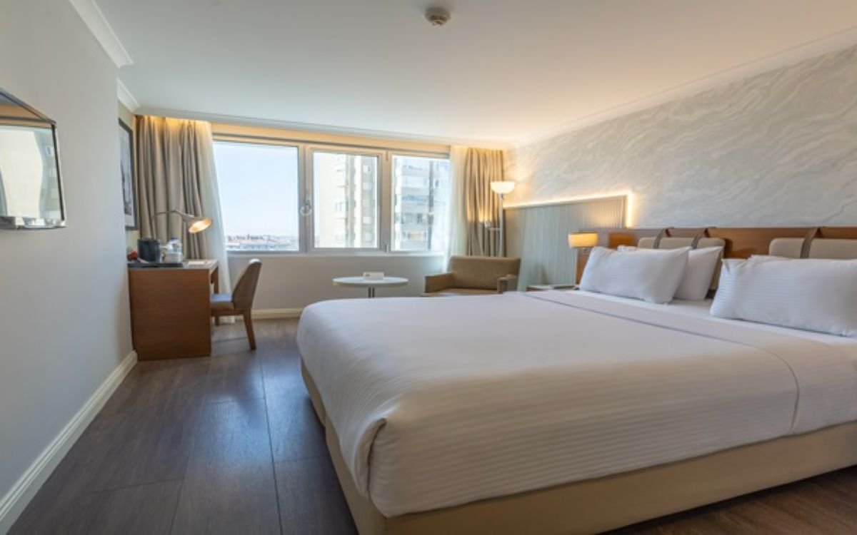 The Deluxe Room – Double Size Bed at Dedeman Istanbul offers a perfect combination of comfort and elegance. Guests can choose between a French bed, two twin beds, or a single bed. Each room features an LCD TV with satellite channels, minibar, in-room safe, air conditioning, and Wi-Fi access. Overlooking the city, the Deluxe Room provides a relaxing ambiance, while the spacious bathroom includes a large bathtub and complimentary luxury toiletries—ideal for unwinding after a long day.