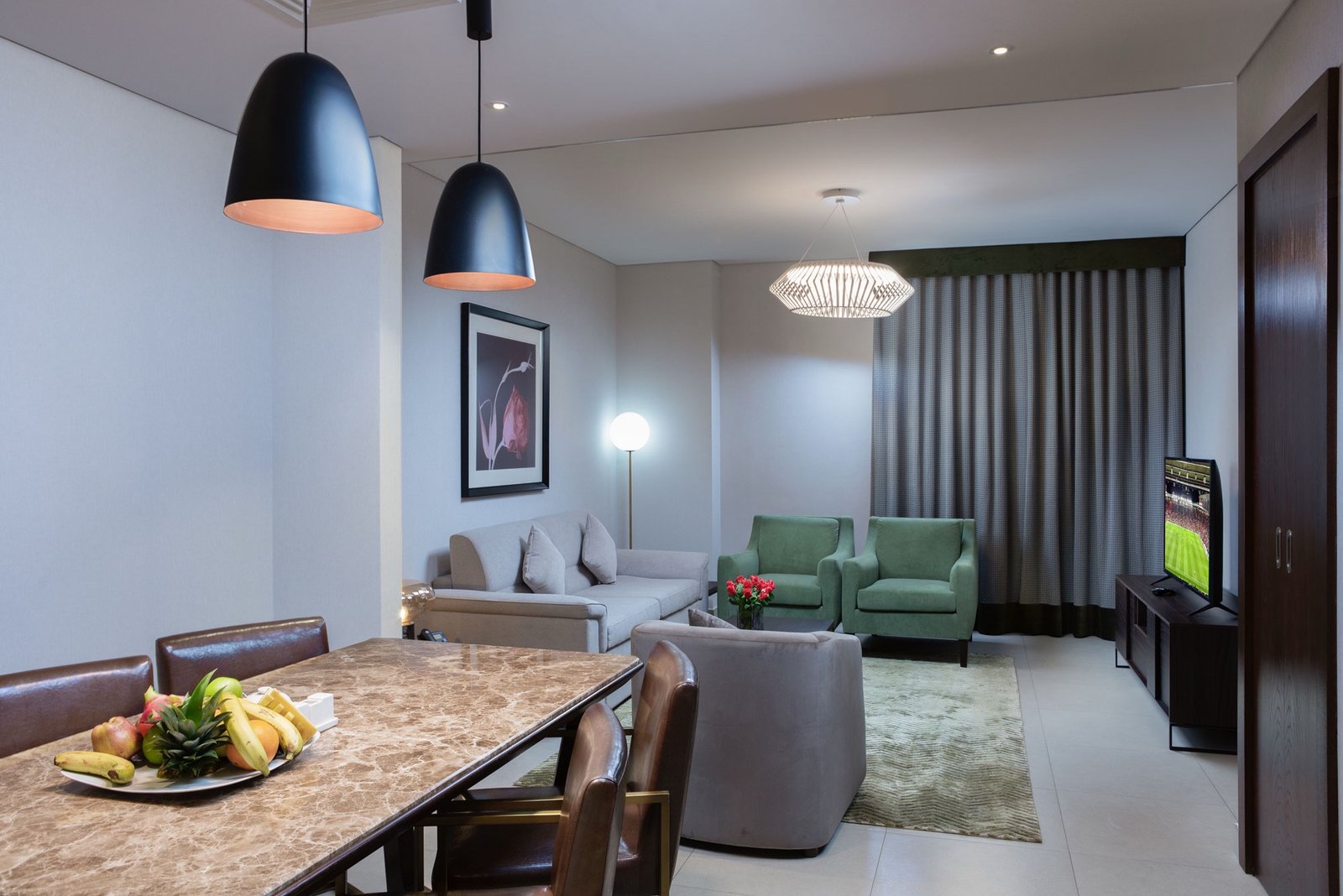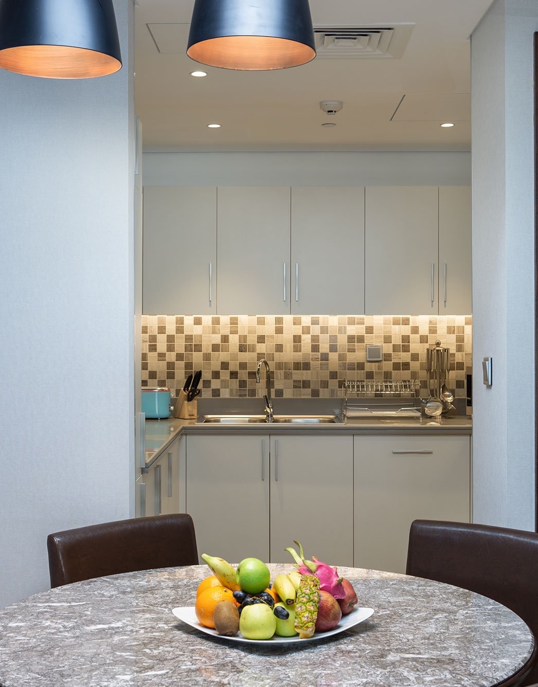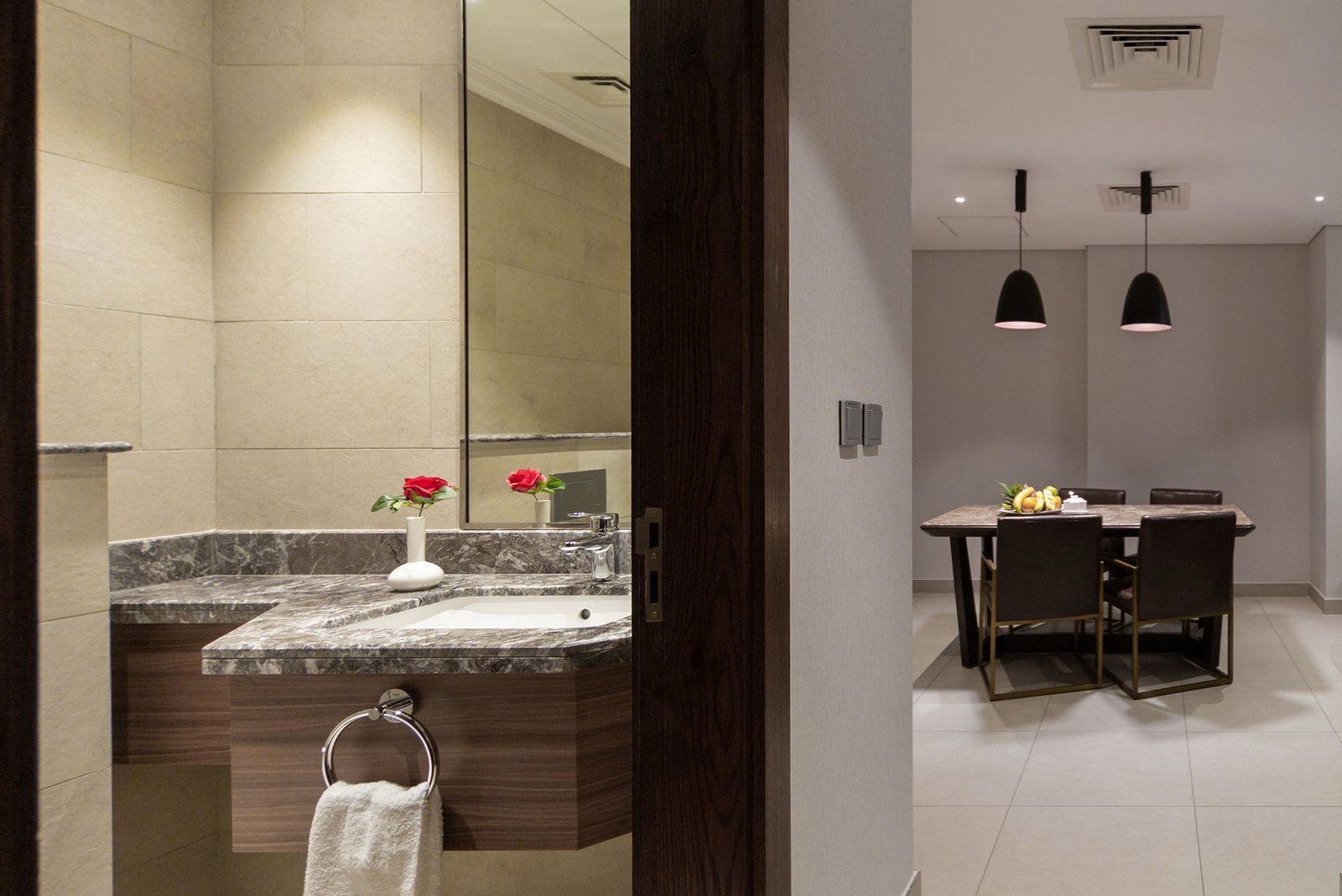 These fully furnished apartments combine contemporary design with state-of-the-art furniture for a comfortable and stylish stay. Each apartment features central air conditioning, a cozy living area, a dining table, a kitchen area, 1 bedroom, 1 bathroom, and a Juliet balcony overlooking the Marina.