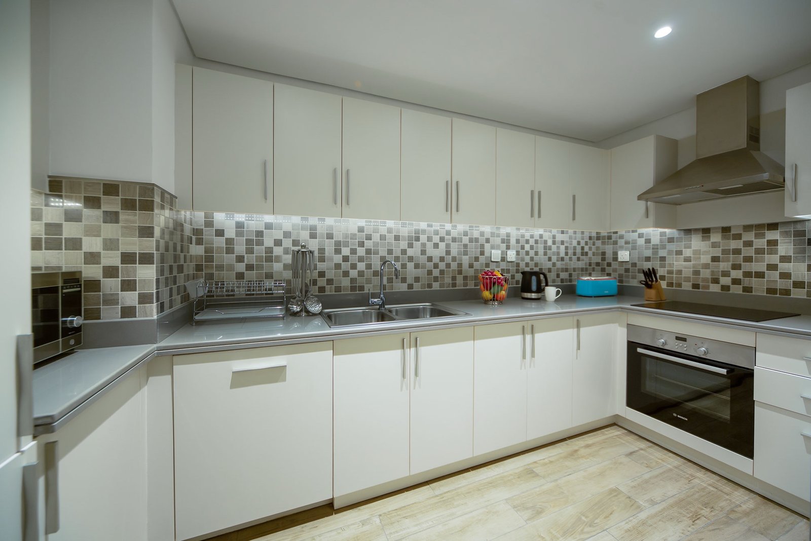 Fully furnished contemporary apartments with modern amenities, including a Juliet balcony offering picturesque Marina views.