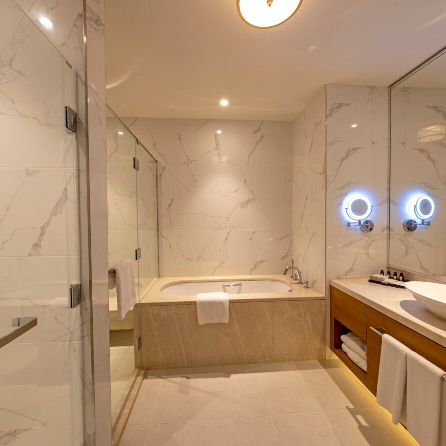 - Amenities: air-conditioning, Bathrobe, Bathroom essentials, Bedroom comforts, Hair dryer, Heating, Jacuzzi, Private bathroom (separate bathtub and shower), Wi-Fi