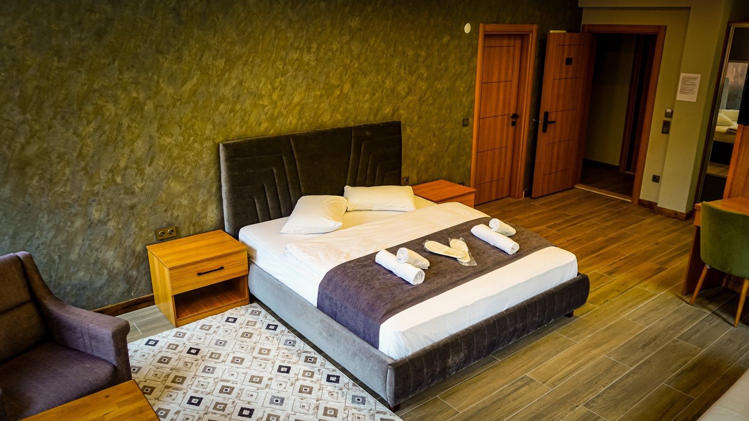 Our Mountain View Suites are designed to offer a perfect blend of comfort, luxury, and breathtaking scenery. Each suite features a master bedroom with a king-sized bed, a spacious living room with comfortable seating, and a fully equipped kitchen, allowing guests to enjoy both relaxation and convenience during their stay.