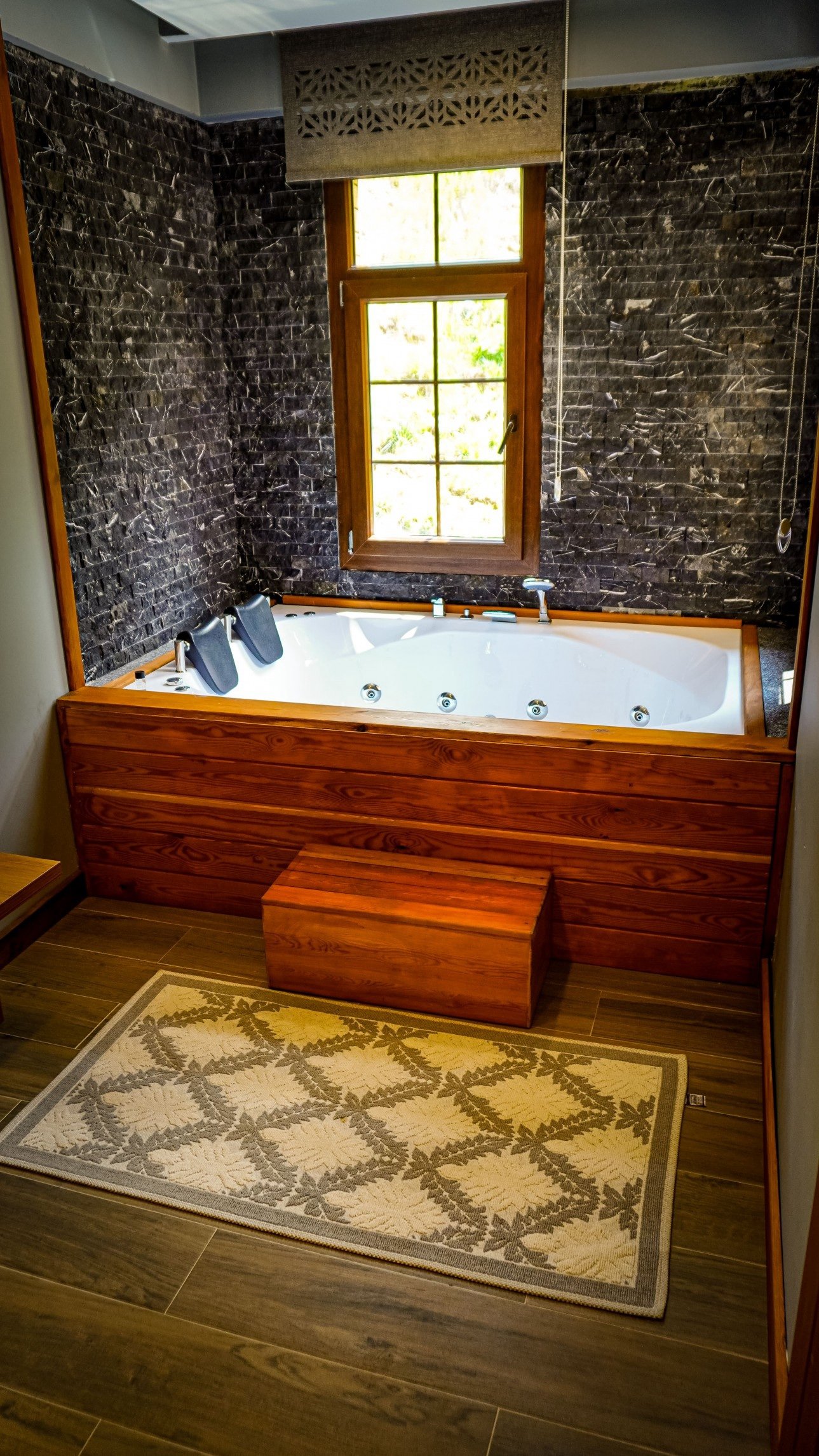 - Amenities: air-conditioning, Bathrobe, Bathroom essentials, Bedroom comforts, Flat Screen, Hair dryer, Heating, Jacuzzi, Private bathroom (separate bathtub and shower), Wi-Fi