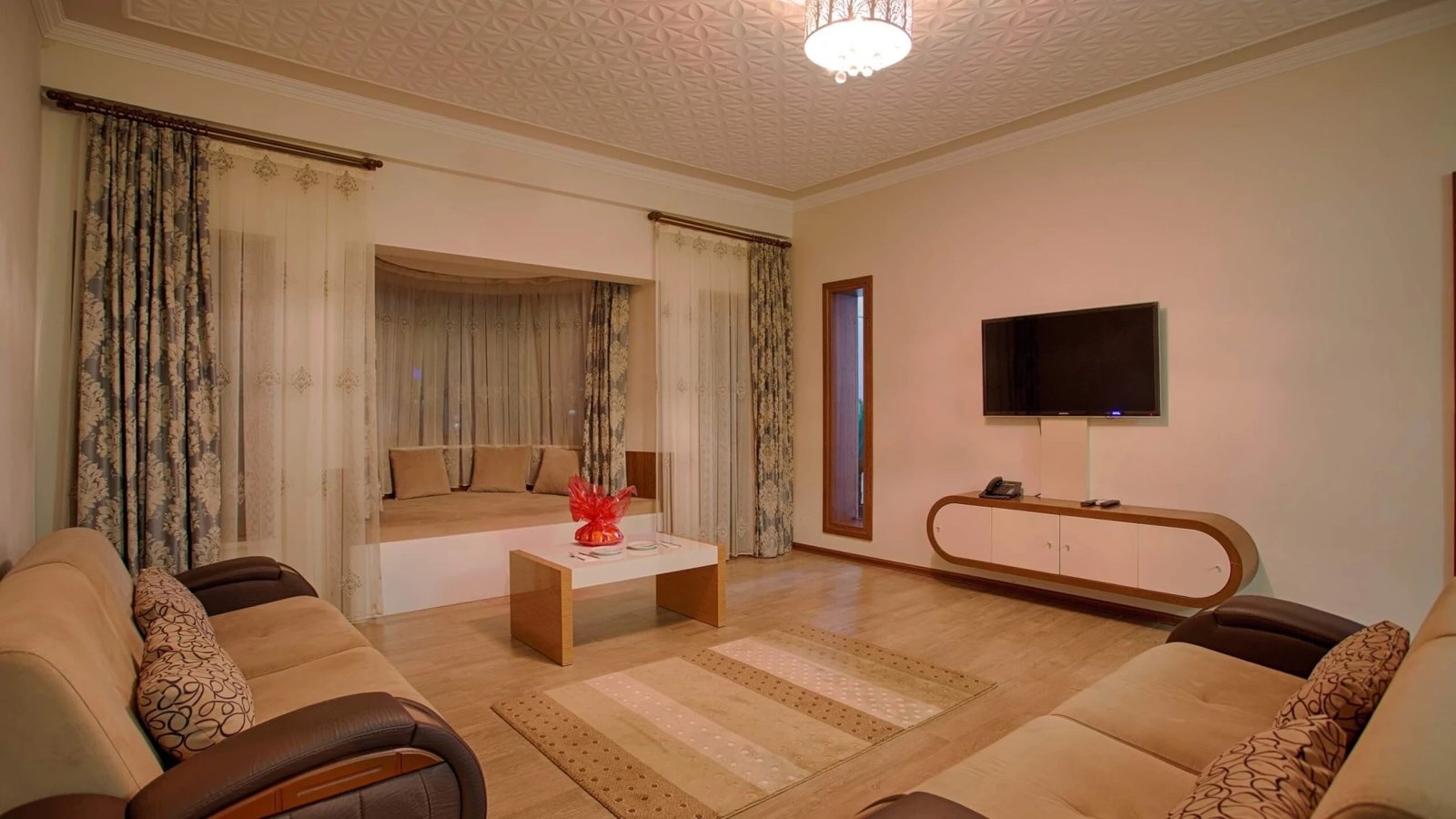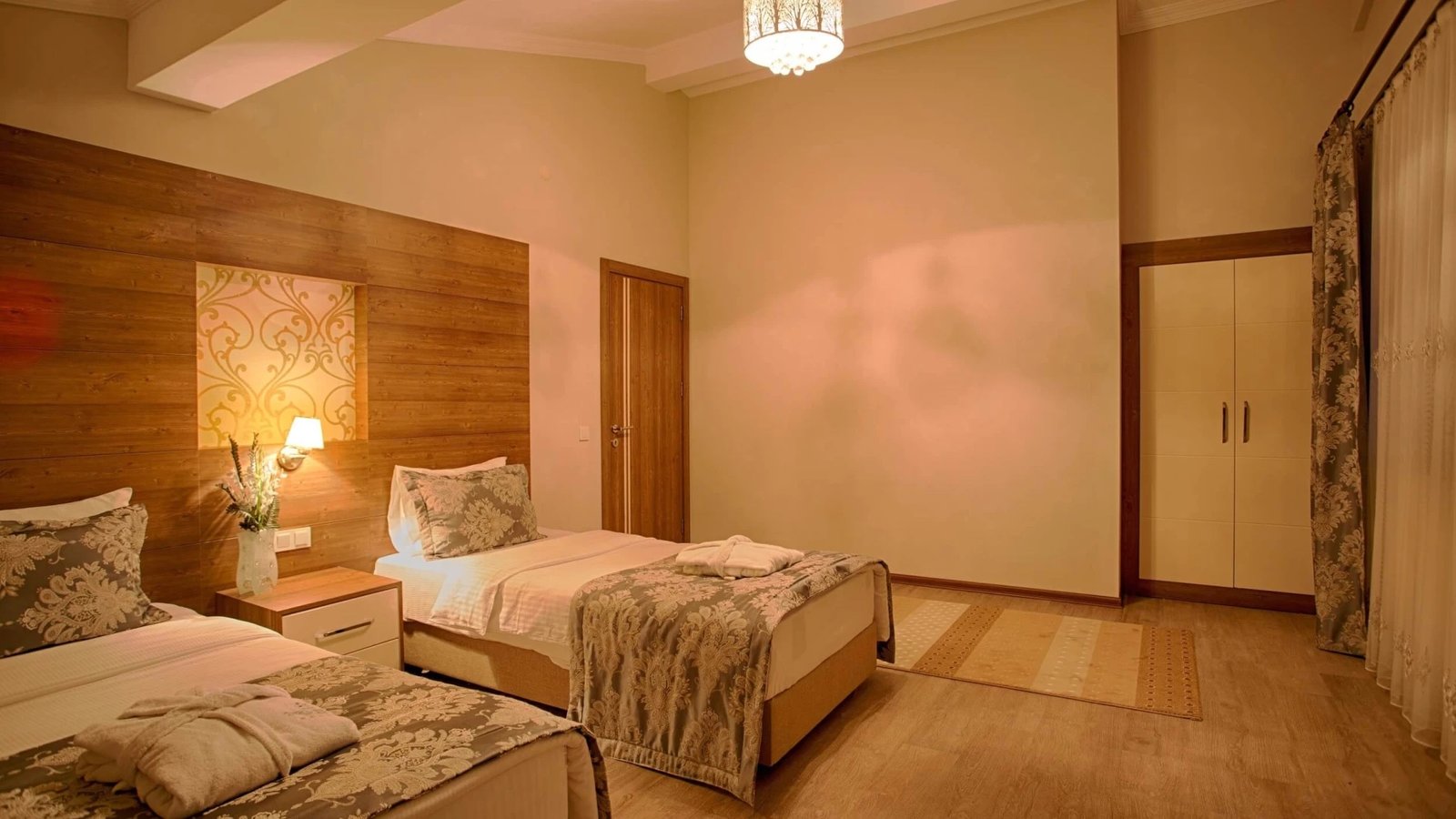 Our VIP Villa offers an unparalleled luxury retreat, featuring a private Turkish bath, thermal pool, sauna, jacuzzi, steam bath, and swimming pool. Equipped with modern conveniences including a fully furnished kitchen, living area, LCD TV, and high-speed internet, the villa ensures comfort and relaxation. Thermal water is available throughout, including underfloor heating, while breakfast, dinner, and optional services such as massages enhance your exclusive stay.