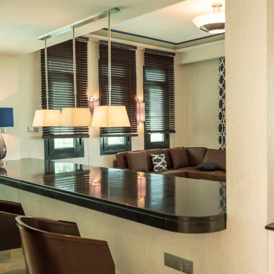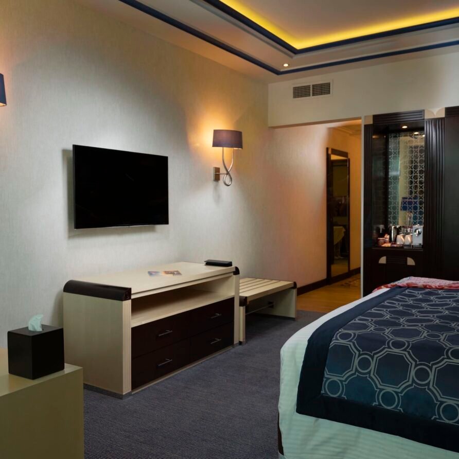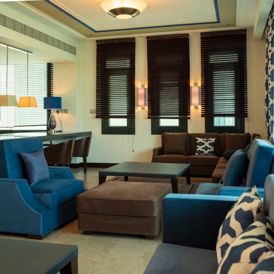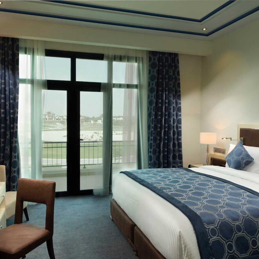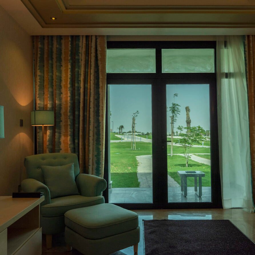 Relax in the Executive Suite at Retaj Salwa Resort & Spa, featuring a spacious bedroom, elegant living room, and luxurious amenities for a rejuvenating stay.