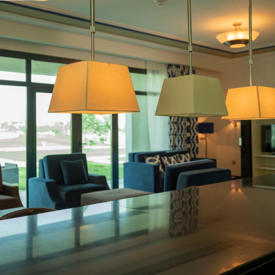 Gather with friends and family in our Two-Bedroom Villas. Offering beautiful landscape views from a furnished balcony, these spacious residences combine a relaxing ambience with contemporary conveniences. Each of our 16 two-bedroom villas spans 288 square meters over two floors, featuring a ground floor with a separate living room and a modern open-plan kitchen.