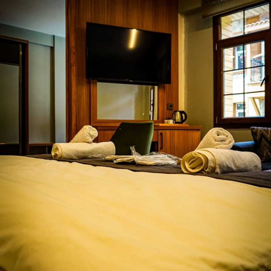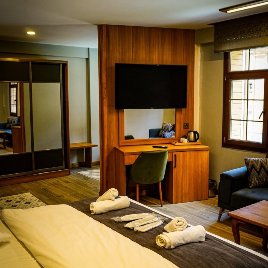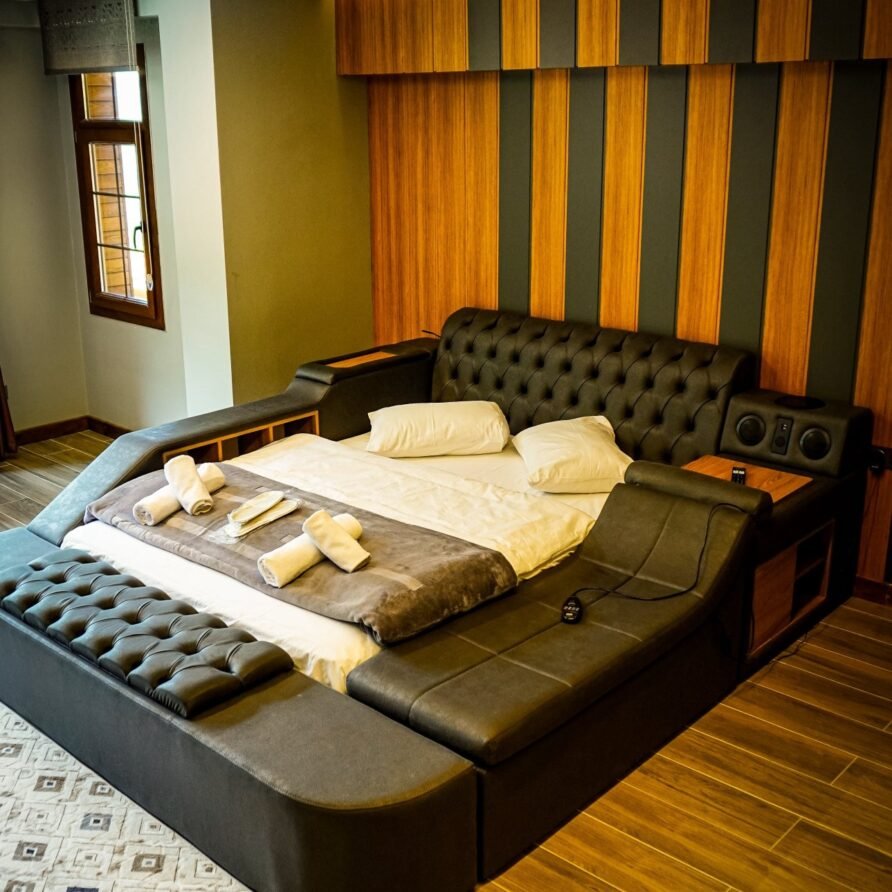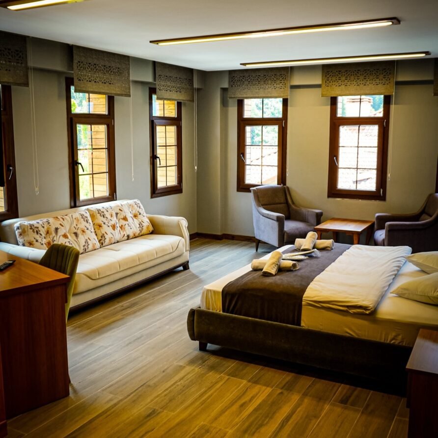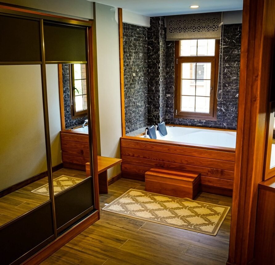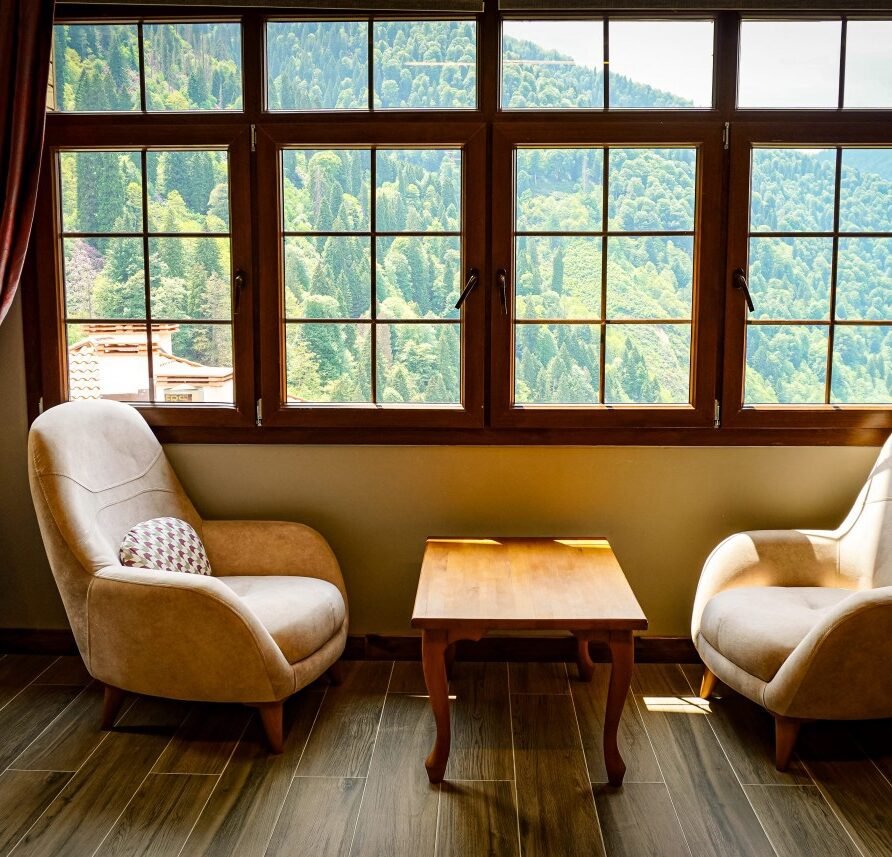 Our three-bedroom villas offer an enhanced sense of space and privacy, spanning 418 square meters and extending to a private yard with a large deck area and a 32-square-meter private pool. Perfect for gatherings with friends and family, each villa features beautiful landscape views from a fully furnished balcony, blending comfort, luxury, and natural beauty.
