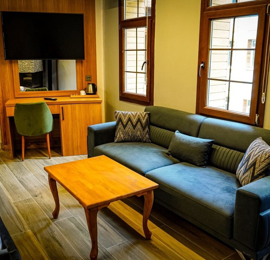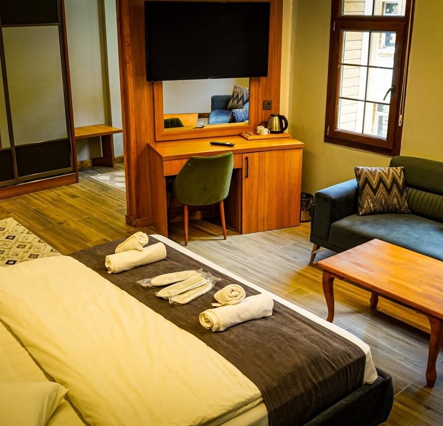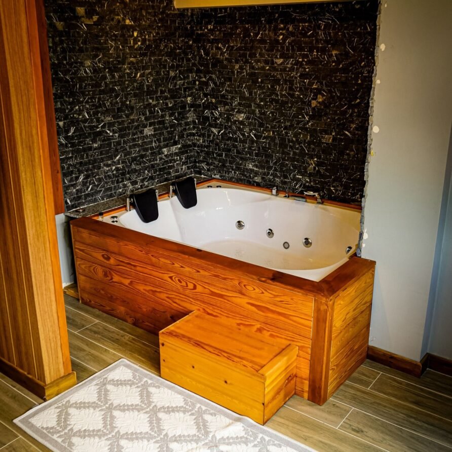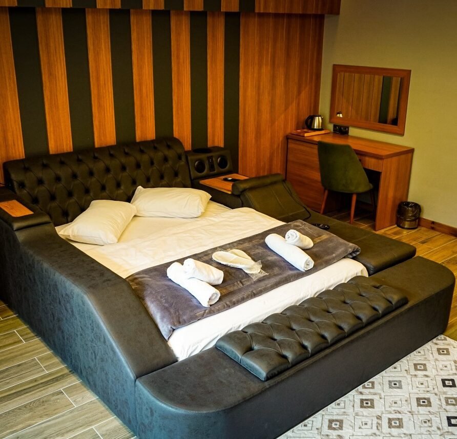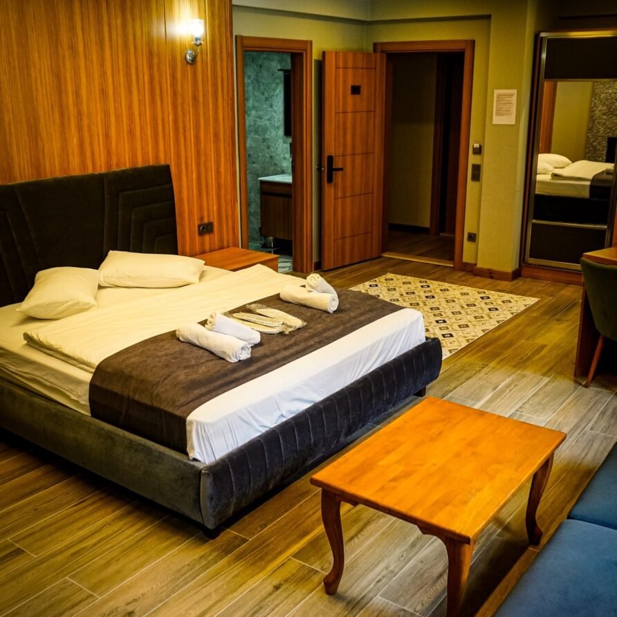 Elegant Deluxe Suite with Jacuzzi, modern amenities, and spacious living areas.